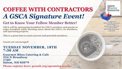 Kick off the Holiday Season by attending Coffee with Contractors and get to know your fellow member better.